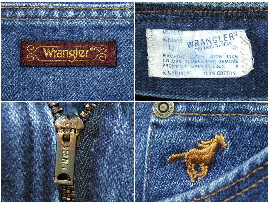 1970年代製 Wrangler NO-FAULT JEANSです。MADE IN USA ジッパーはスコービル製。着用感はありますが、特に目立ったダメージはありません。