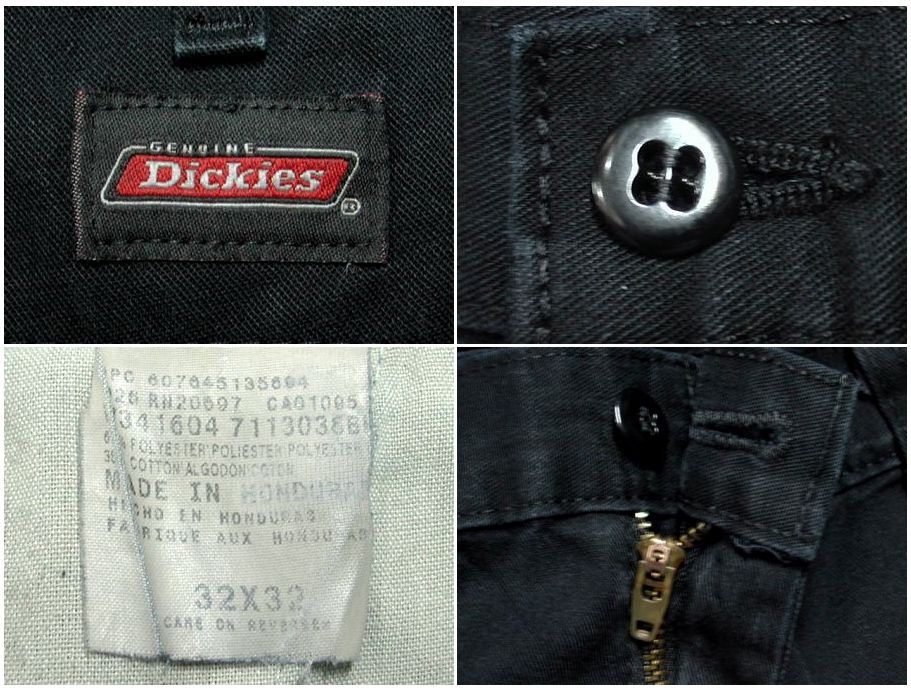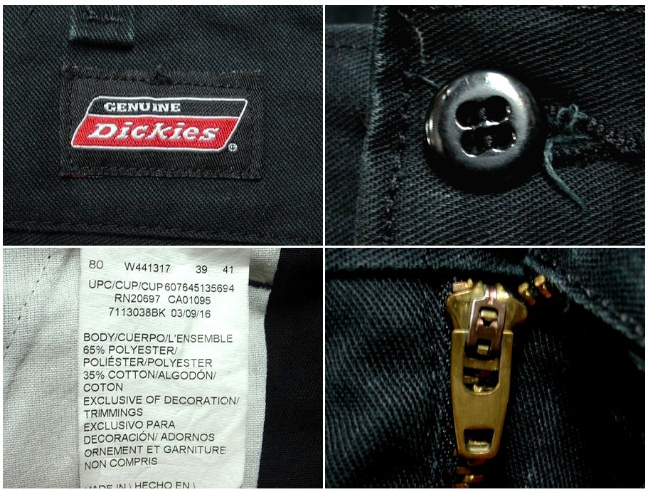 ディッキーズ 874 ワークパンツです。カラーはブラックで素材はポリエステル65% コットン35%になります。着用感はありますが、特に目立ったダメージはありません。