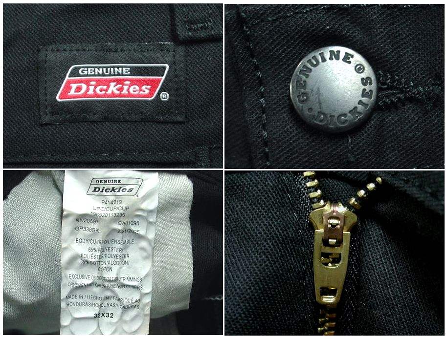 ディッキーズ カーゴパンツです。カラーはブラックで素材はコットン35% ポリエステル65%になります。若干スレがありますが、特に目立ったダメージはありません。