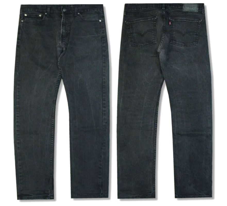Levi's 521 ブラックジーンズです。着用感はありますが、特に目立ったダメージはありません。