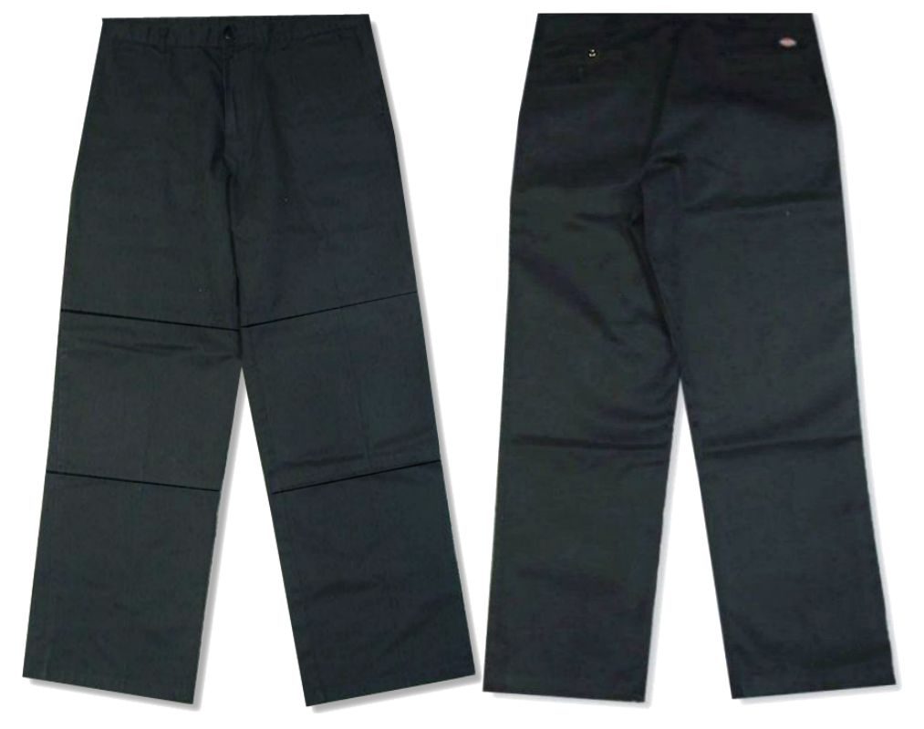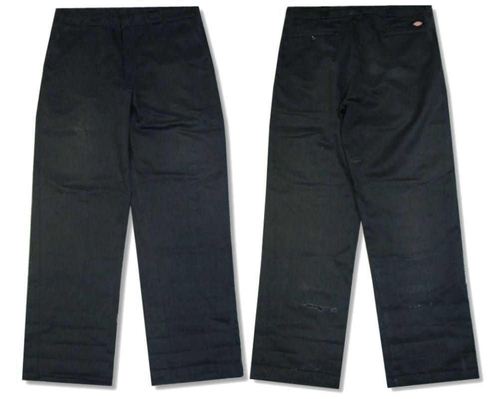 ディッキーズ ダブルニー ワークパンツです。カラーはブラックで素材はポリエステル65% コットン35%になります。着用感はありますが、特に目立ったダメージはありません。