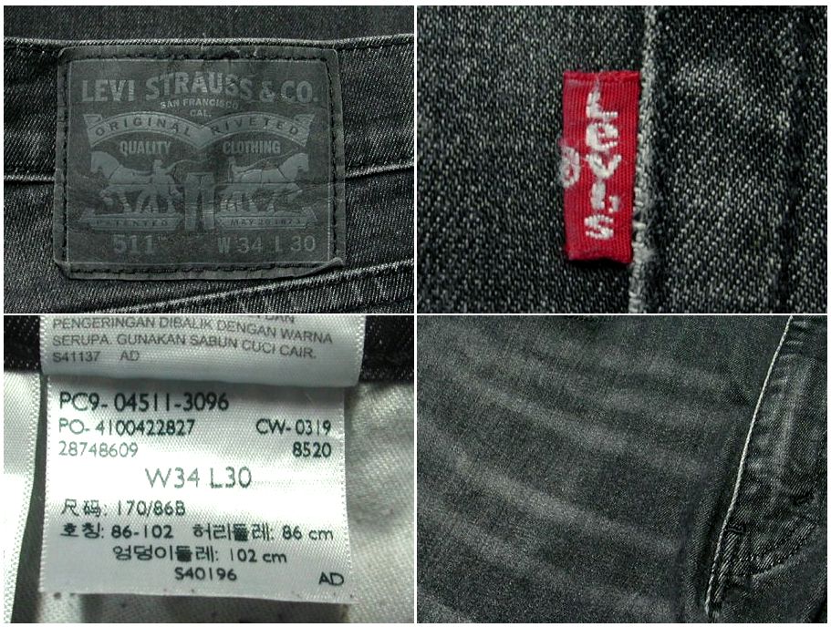 Levi's 511 スリムジーンズです。表面に薄シミ・股下にリペアがあります。