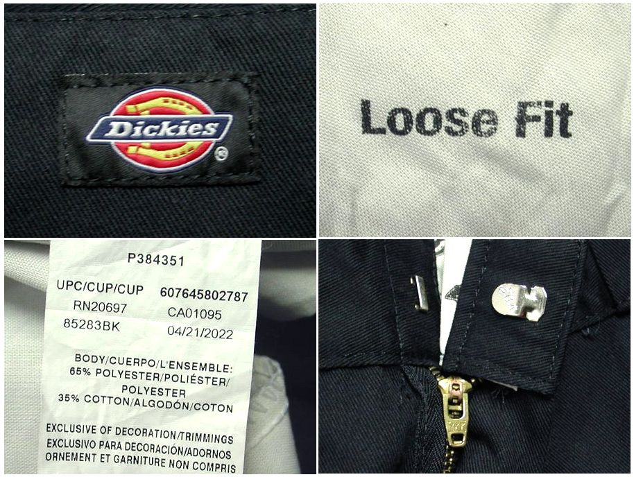 ディッキーズ ダブルニー ワークパンツです。カラーはブラックで素材はポリエステル65% コットン35%になります。着用感はありますが、特に目立ったダメージはありません。
