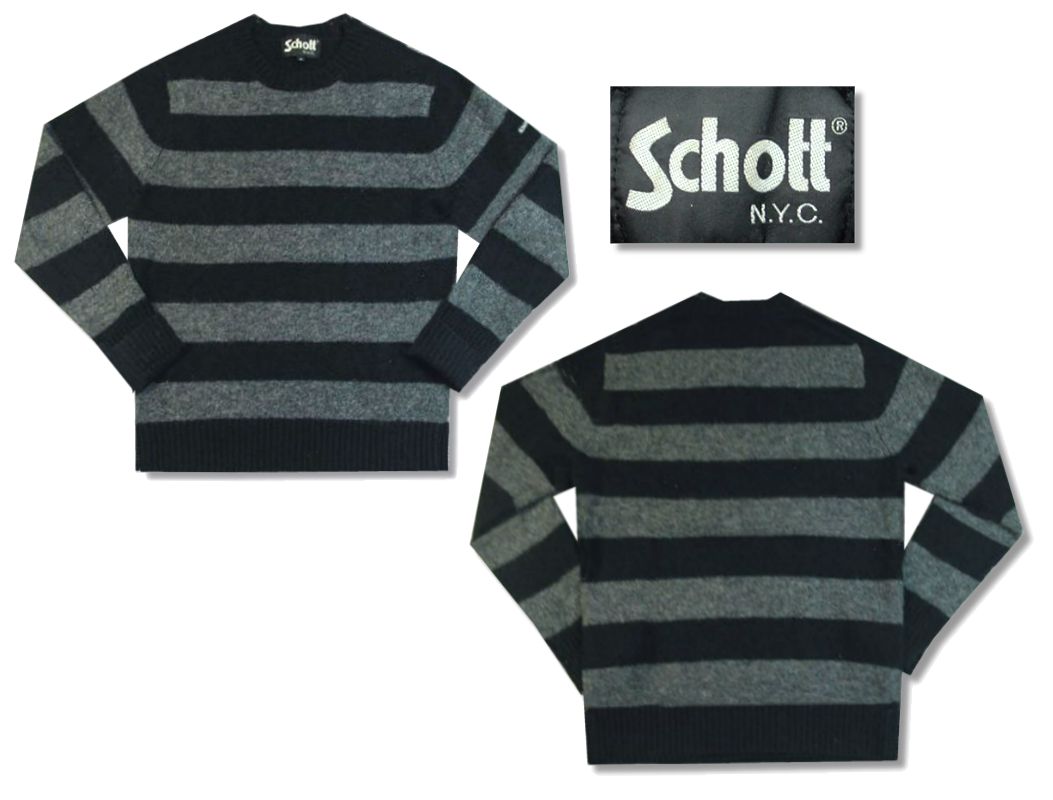Schott ストライプ ウールセーターです。カラーはブラック×グレー 素材はウール100%になります。着用感はありますが、特に目立ったダメージはありません。
