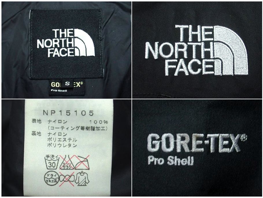 ザ・ノースフェイス ゴアテックス マウンテンジャケットです。NP15105 カラーはブラックで素材はナイロン100%になります。着用感はありますが、特に目立ったダメージはありません。