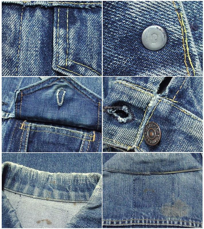 USA 赤タブは均等VのBIG-E ポタン裏の刻印はO フラップ裏の生地は同デニムになります。パッチは取れておりますが半分残っておりますので付属致します。襟・袖にリペアとホツレがあります。色落ちはいい感じです。