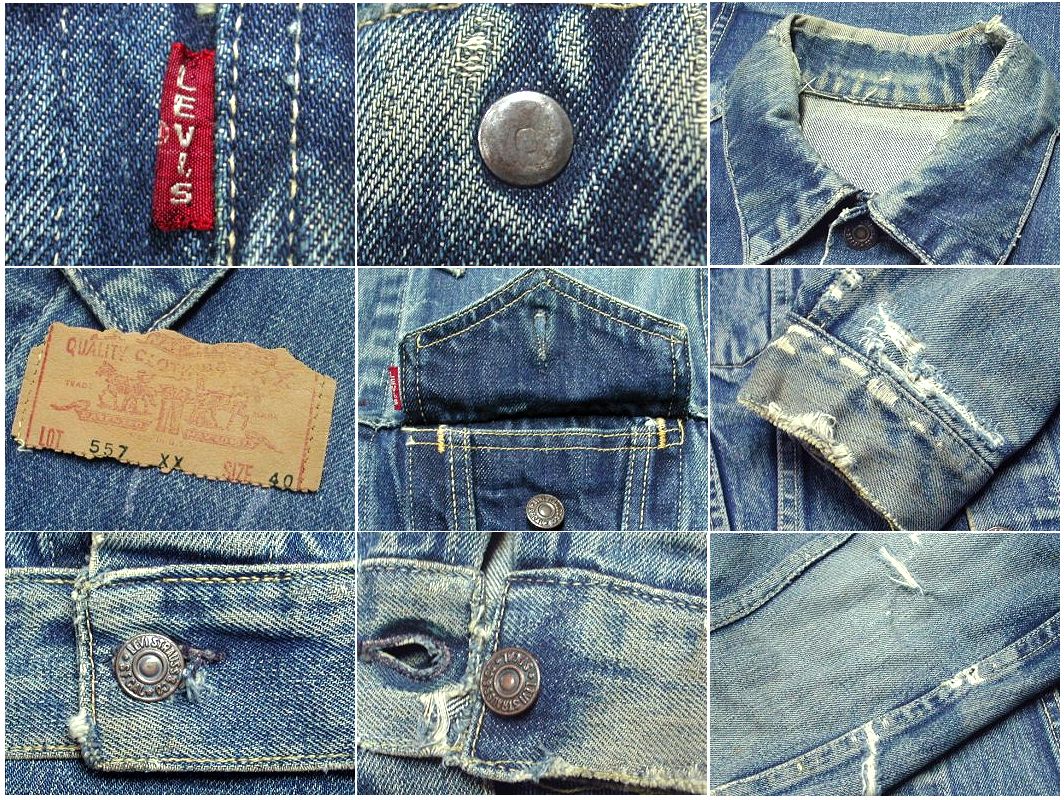 VINTAGE 1960年代製 LEVI'S 557 です。MADE IN USA 赤タブは均等VのBIG-E ポタン裏の刻印はA フラップ裏の生地は同デニムになります。こちらは両袖口部分を付け替えております。若干細かなホツレ等ございますが、特に目立ったダメージはありません。