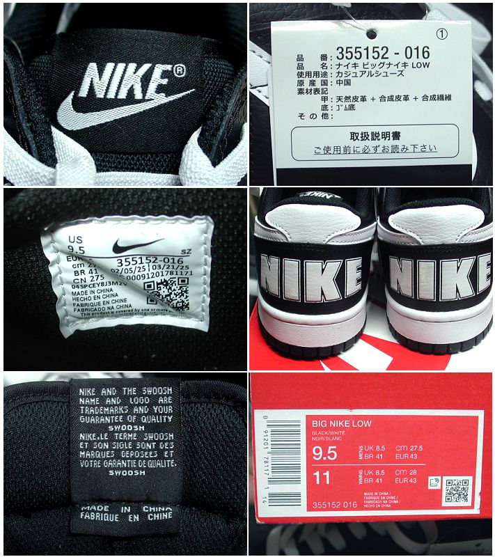 ナイキ BIG NIKE LOW ブラック/ホワイトです。355152-016 ヒールにクラシックなNIKEロゴを配置したモデルです。状態は新品未使用品になります。
