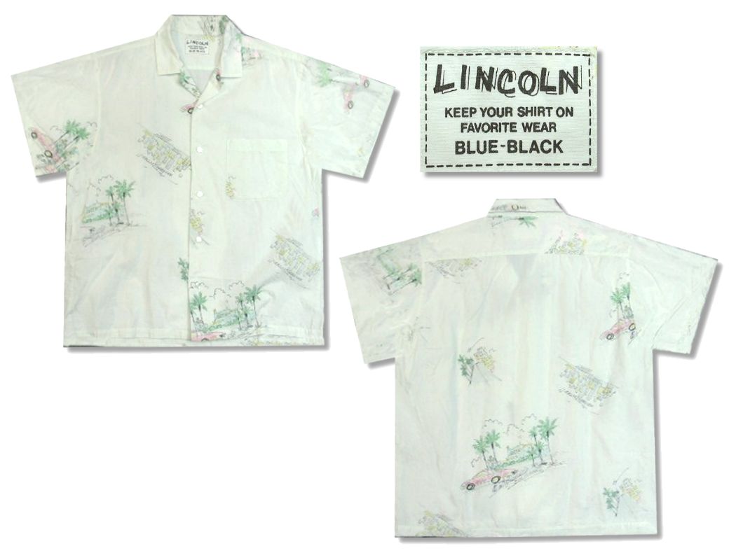 LINCOLN アロハシャツです。素材はコットン100% 着用感はありますが、特に目立ったダメージはありません。