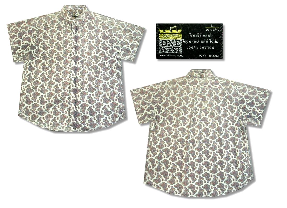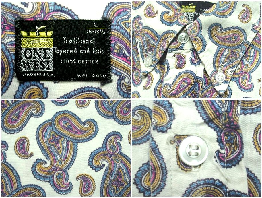 1980年代製 ONE WEST ペイズリー柄 半袖シャツです。素材はコットン100% 着用感はありますが、特に目立ったダメージはありません。
