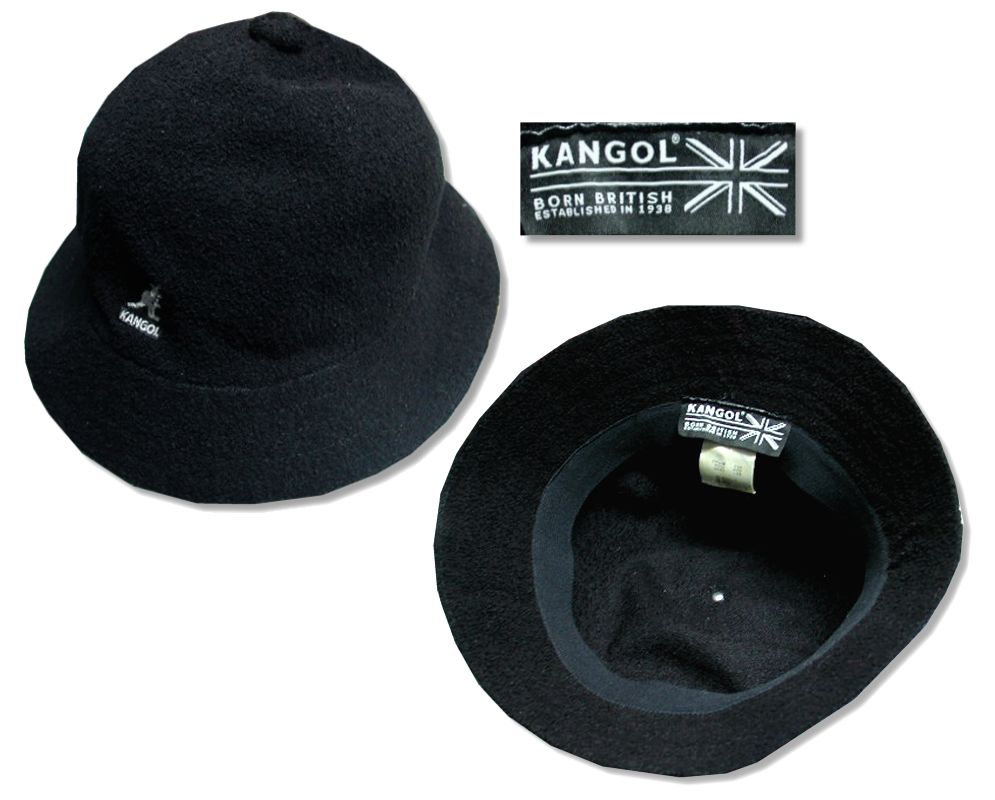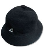 カンゴール サファリ バケットハットです。カラーはブラックで素材はモダクリル45% アクリル40% ナイロン15%になります。着用感はありますが、特に目立ったダメージはありません。