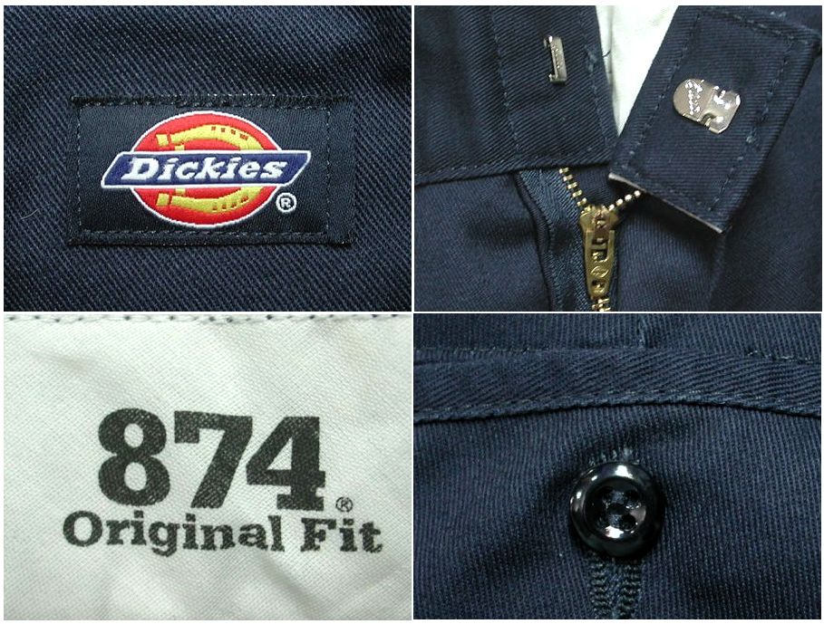 ディッキーズ 874 ワークパンツです。カラーはネイビーで素材はポリエステル65% コットン35%になります。着用感はありますが、特に目立ったダメージはありません。