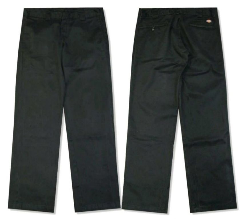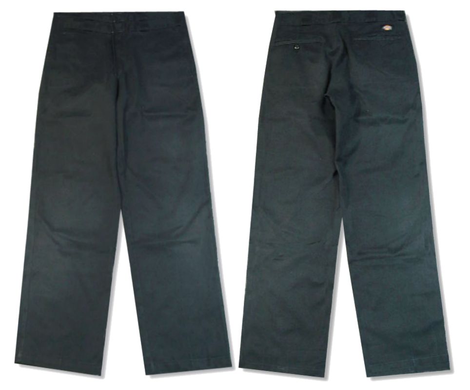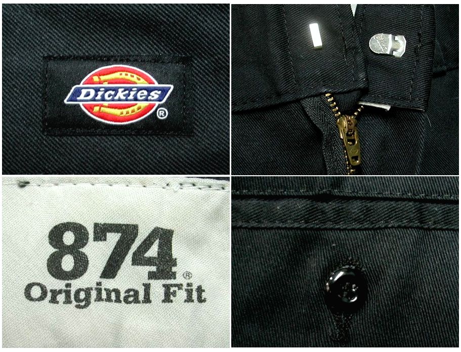 ディッキーズ 874 ワークパンツです。カラーはブラックで素材はポリエステル65% コットン35%になります。着用感はありますが、特に目立ったダメージはありません。