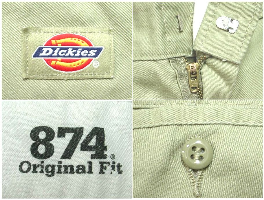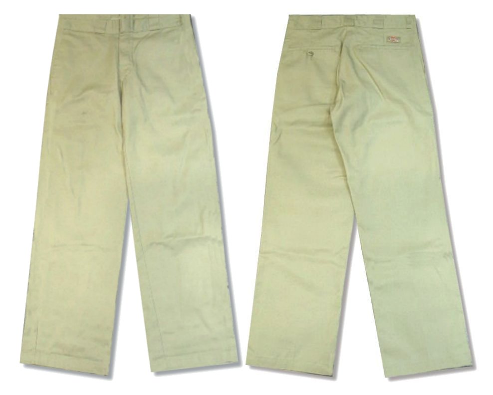 ディッキーズ 874 ワークパンツです。カラーはベージュで素材はポリエステル65% コットン35%になります。着用感はありますが、特に目立ったダメージはありません。