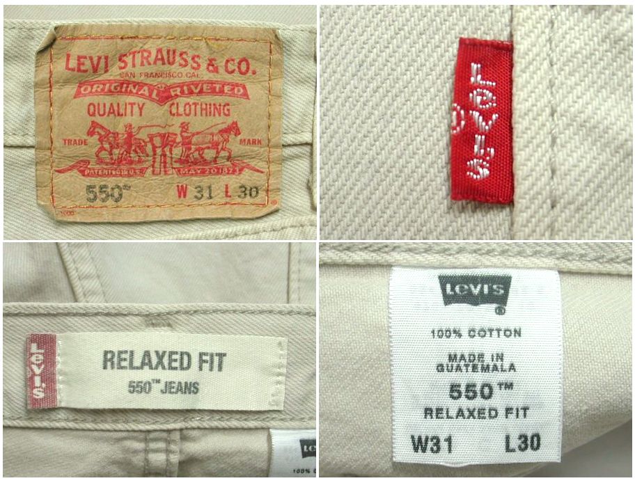Levi's 550 リラックスフィット ジーンズです。カラーはベージュになります。着用感はありますが、特に目立ったダメージはありません。