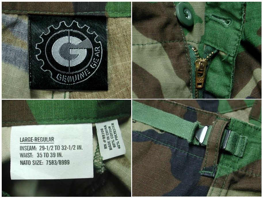 GENUINE GEAR ウッドランドカモ フィールドパンツです。RIPSTOP 素材はコットン60% ポリエステル40%になります。状態は良好で特に目立ったダメージはありません。