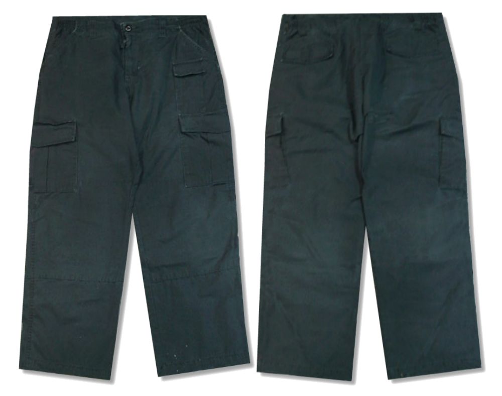 TRU-SPEC カーゴパンツです。カラーはブラックで素材はコットン35% ポリエステル65%になります。着用感はありますが、特に目立ったダメージはありません。
