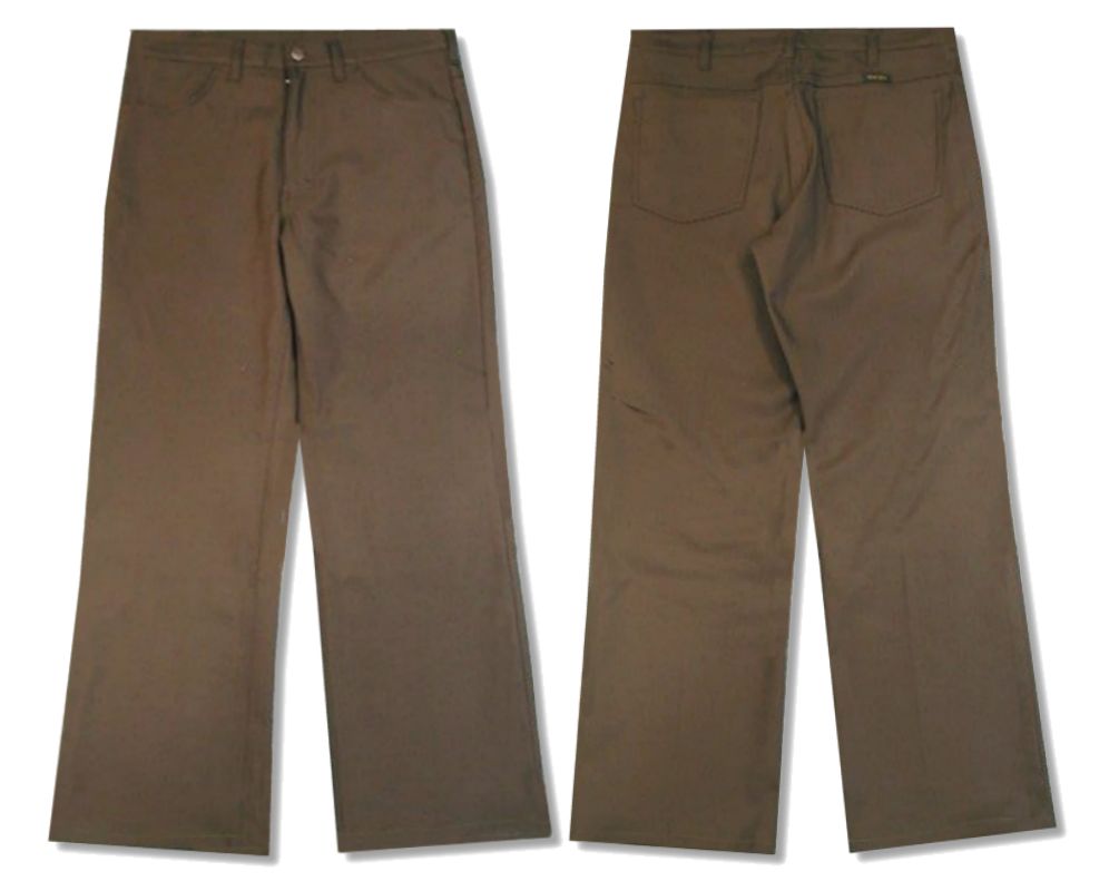 ラングラー WI1141 スラックスです。カラーはブラウンで素材はポリエステル100%になります。着用感はありますが、特に目立ったダメージはありません。