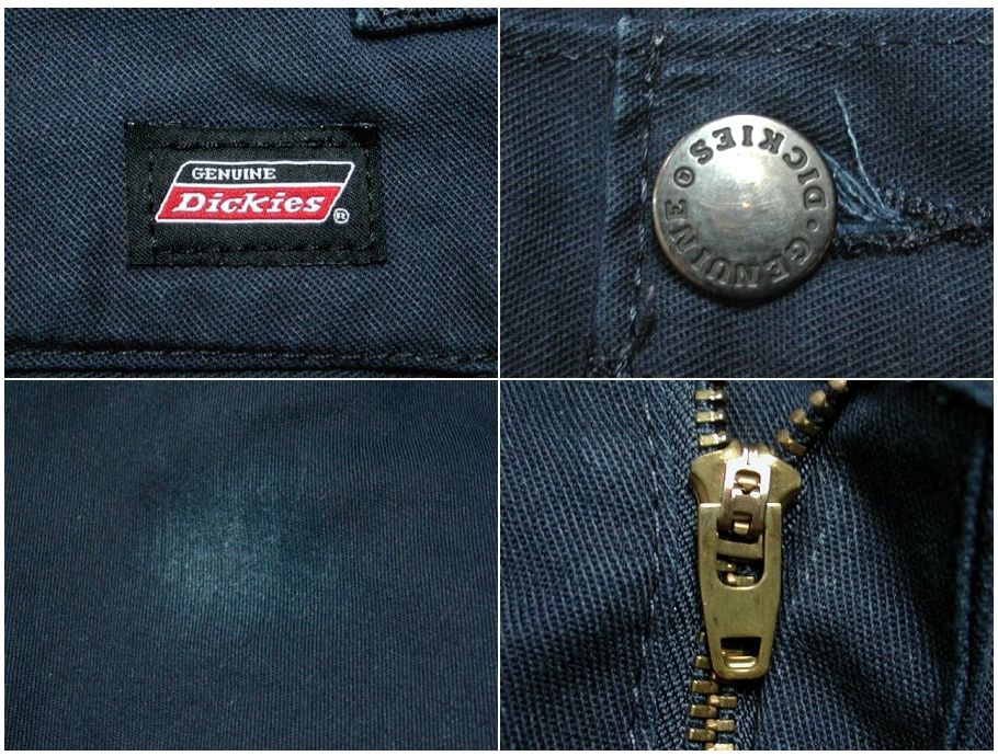 ディッキーズ ワークパンツです。カラーはネイビーで素材はコットン35% ポリエステル65%になります。若干スレがありますが、特に目立ったダメージはありません。
