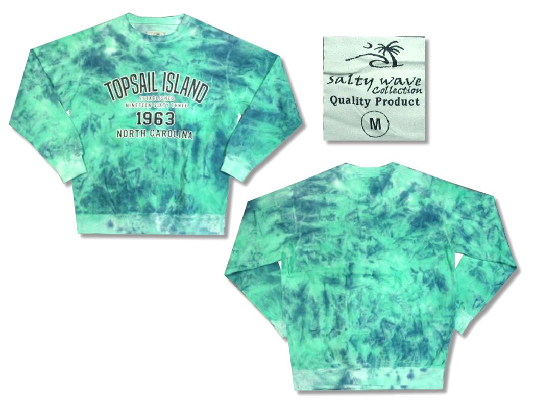 タイダイ染 スウェットです。素材はコットン80% ポリエステル20%になります。着用感はありますが、特に目立ったダメージはありません。