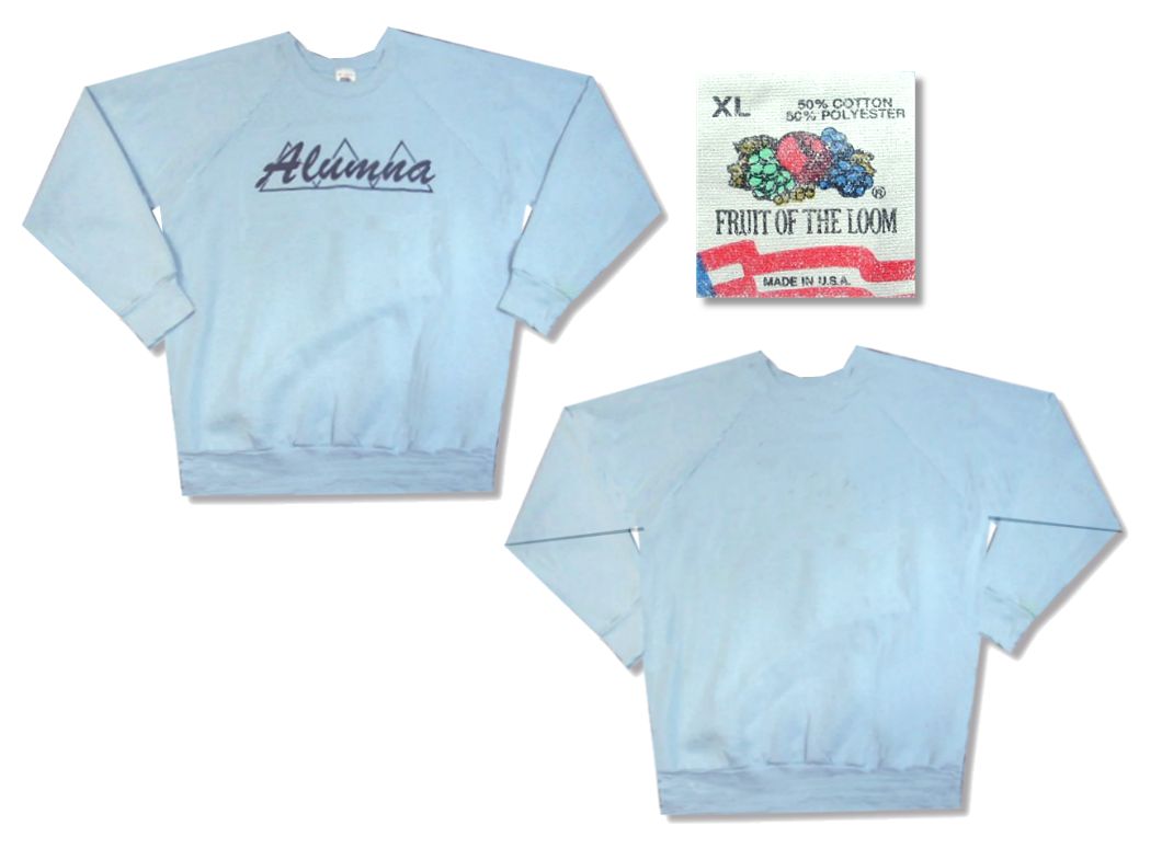 1980年代製 FRUIT OF THE LOOM オールドスウェットです。MADE IN USA カラーは水色で素材はコットン50% ポリエステル50%になります。若干袖に薄シミがありますが、特に目立った大きなダメージはありません。