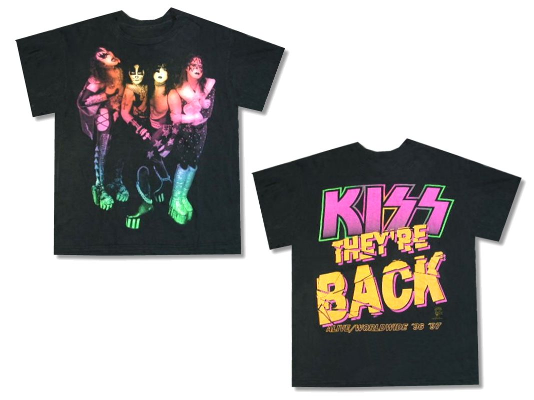1990年代製 KISS THER'RE BACK ツアーTシャツです。MADE IN USA タグは取れておりますが当時物です。シングルステッチ カラーはブラックで素材はコットン100%になります。着用感はありますが、特に目立ったダメージはありません。