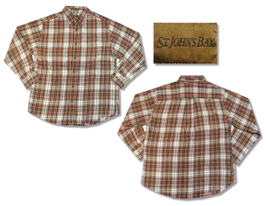 ST JOHN'S BAY ネルシャツです。素材はコットン100% 着用感はありますが、特に目立ったダメージはありません。