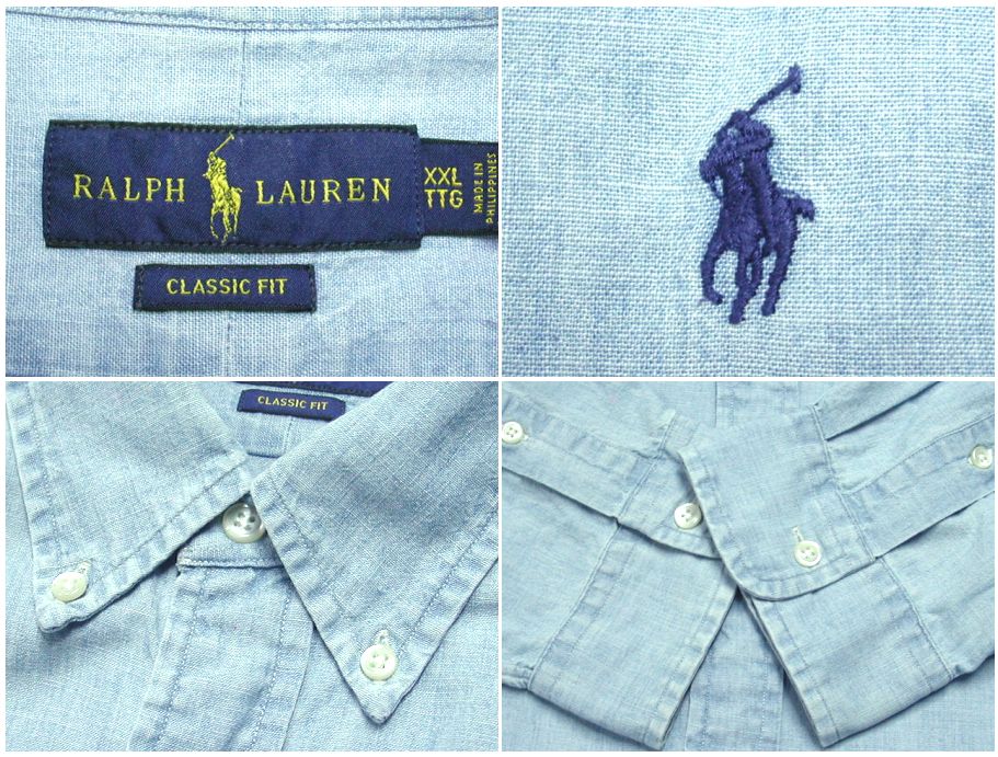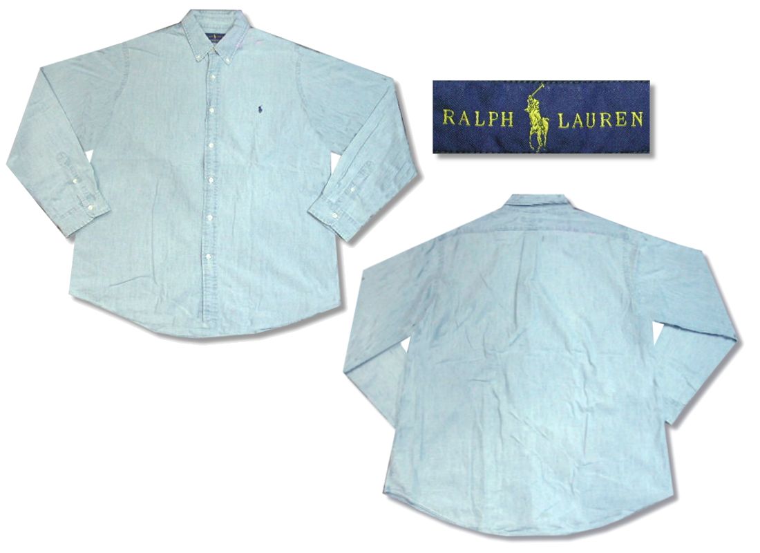 ラルフローレン シャンブレーシャツです。素材はコットン100% 着用感はありますが、特に目立ったダメージはありません。
