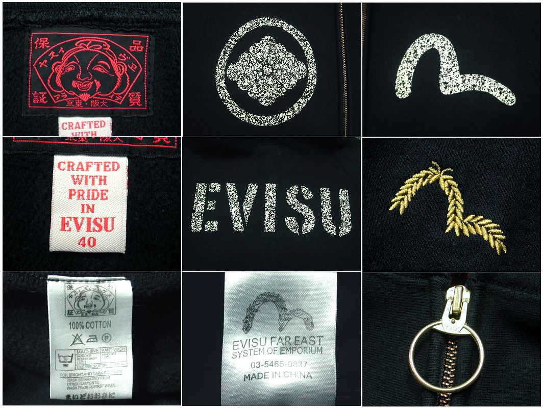 EVISU ジップアップ スウェットパーカーです。カラーはブラックで素材はコットン100%になります。着用感はありますが、特に目立ったダメージはありません。