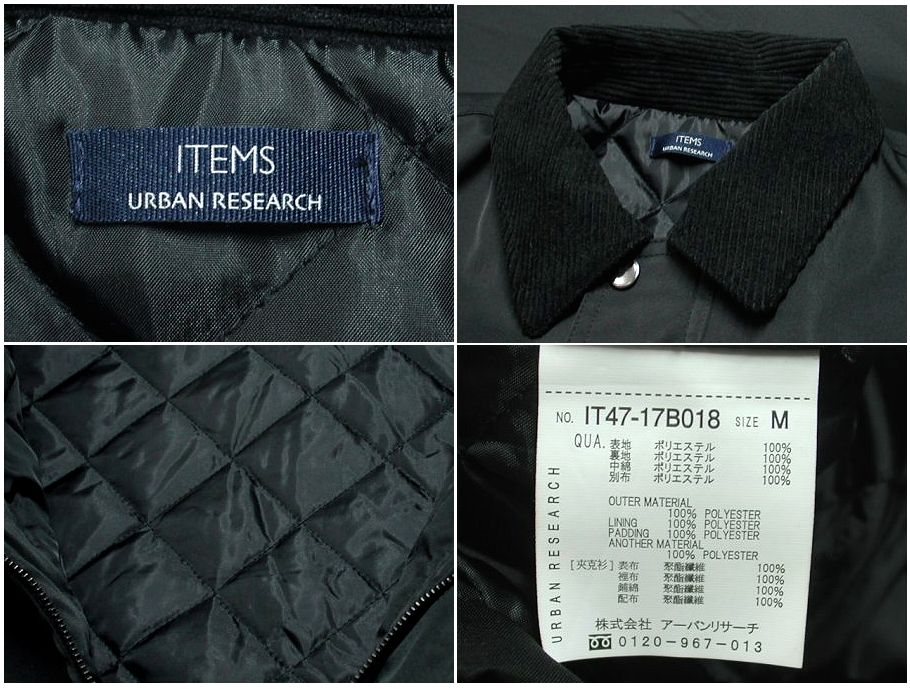 アーバンリサーチ 中綿入り ハンティングジャケットです。IT47-17B018 カラーはブラックで素材はポリエステル100%になります。着用感は無く新品同様です。
