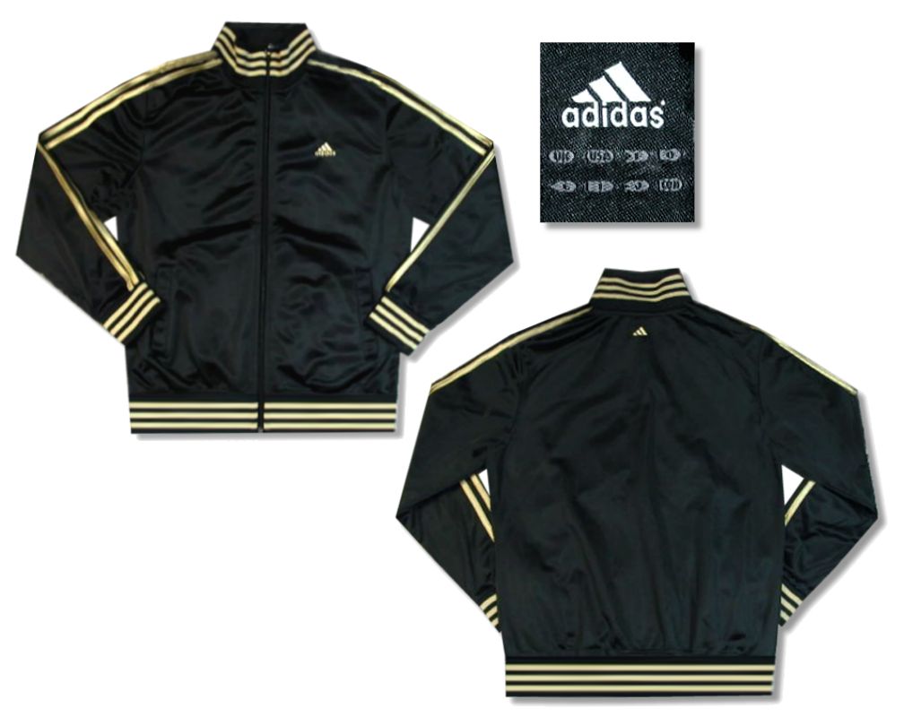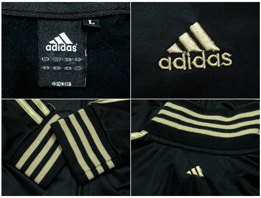 アディダス ジャージです。カラーはブラック×ゴールド 素材はポリエステル100%になります。着用感はありますが、特に目立ったダメージはありません。