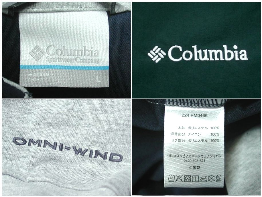 コロンビア ウィルキンソン コーブ ジャケットです。PM0466 カラーはネイビー/グリーン×グレー 素材はポリエステル100%になります。状態は良好で特に目立ったダメージはありません。
