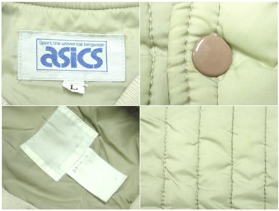 1980年代製 オールド アシックス ナイロンジャケットです。カラーはベージュで素材はナイロン100%になります。着用感はありますが、特に目立ったダメージはありません。