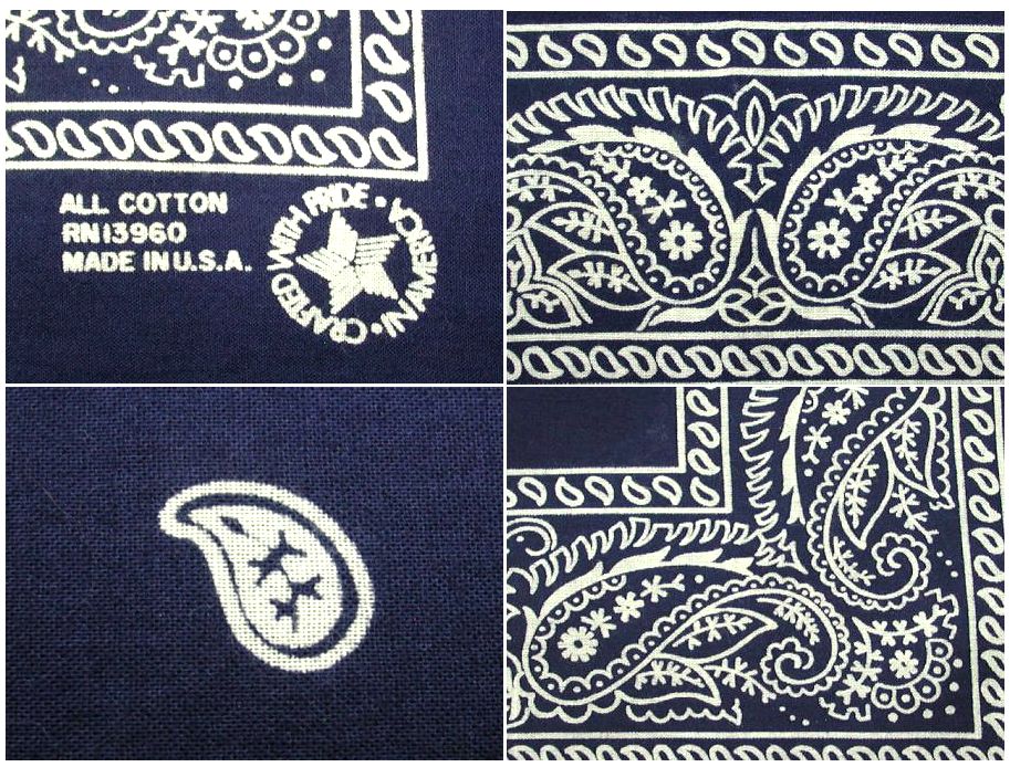 1980年代製 バンダナです。MADE IN USA カラーはネイビーで素材はコットン100%になります。使用感はありますが、特に目立ったダメージはありません。