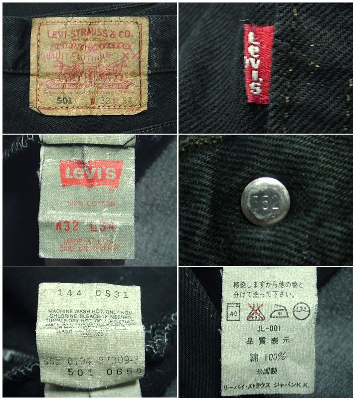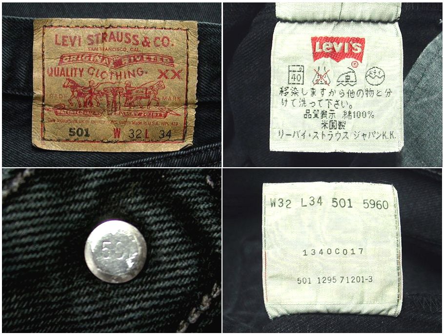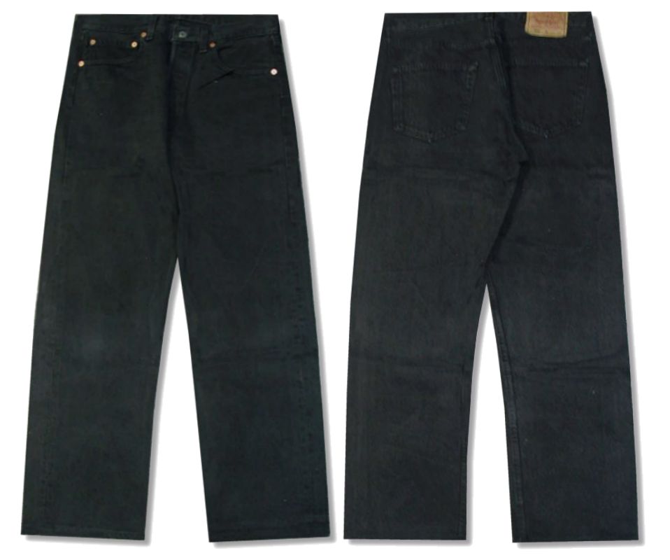 1990年代製 Levi's 501 ブラックジーンズ 後染めです。MADE IN USA トップボタン裏の数字は501 着用感はありますが、特に目立ったダメージはありません。
