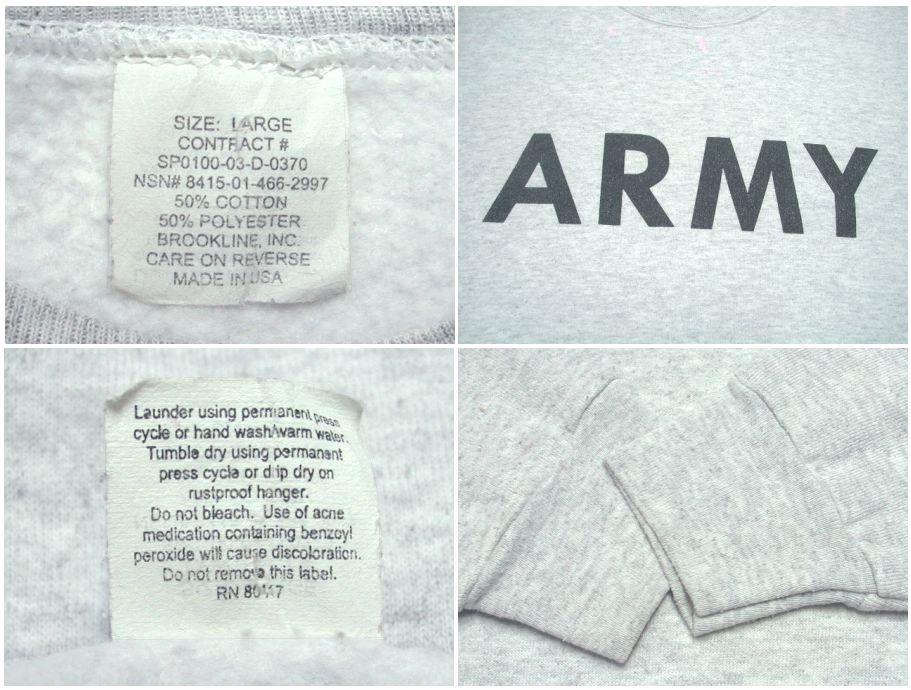 2003年製 US ARMY スウェットです。MADE IN USA SPO100-03-D-0370 カラーはグレーの霜降りで素材はコットン50%