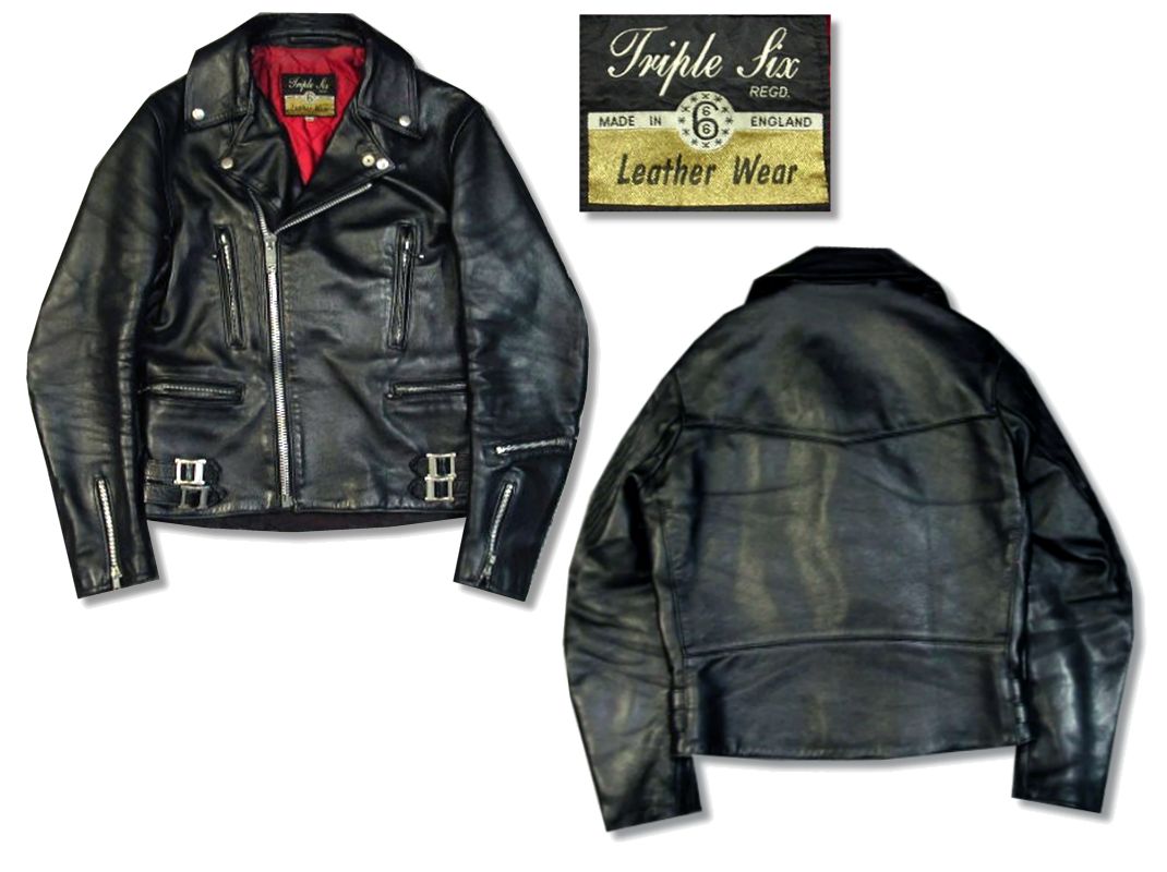 トリプルシックス レザーウェア 旧タグ ダブルライダースジャケットです。MADE IN ENGLAND カラーはブラックで素材は牛革になります。裏地のキルティング部分のホツレをリペアしてありますが、見えない部分なので着用には問題ないと思います。その他は表面に細かなキズ等御座いますが、特に目立った大きなダメージはありません。