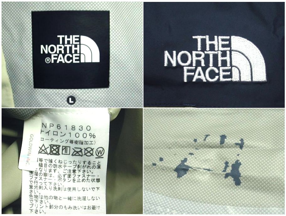 ザ・ノースフェイス ドット ショット ジャケットです。NP61830 カラーはベージュ×ネイビー 素材はナイロン100%になります。裏地のコーティングに若干のはがれがありますが、見えない部分なので着用には問題ないと思います。表面は特に目立ったダメージはありません。