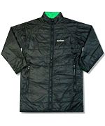 ワイルドシングス プリマロフト ハーフロング ジャケットです。MADE IN USA カラーはブラックで裏地はグリーンになります。素材はポリエステル100% 着用感はありますが、特に目立ったダメージはありません。
