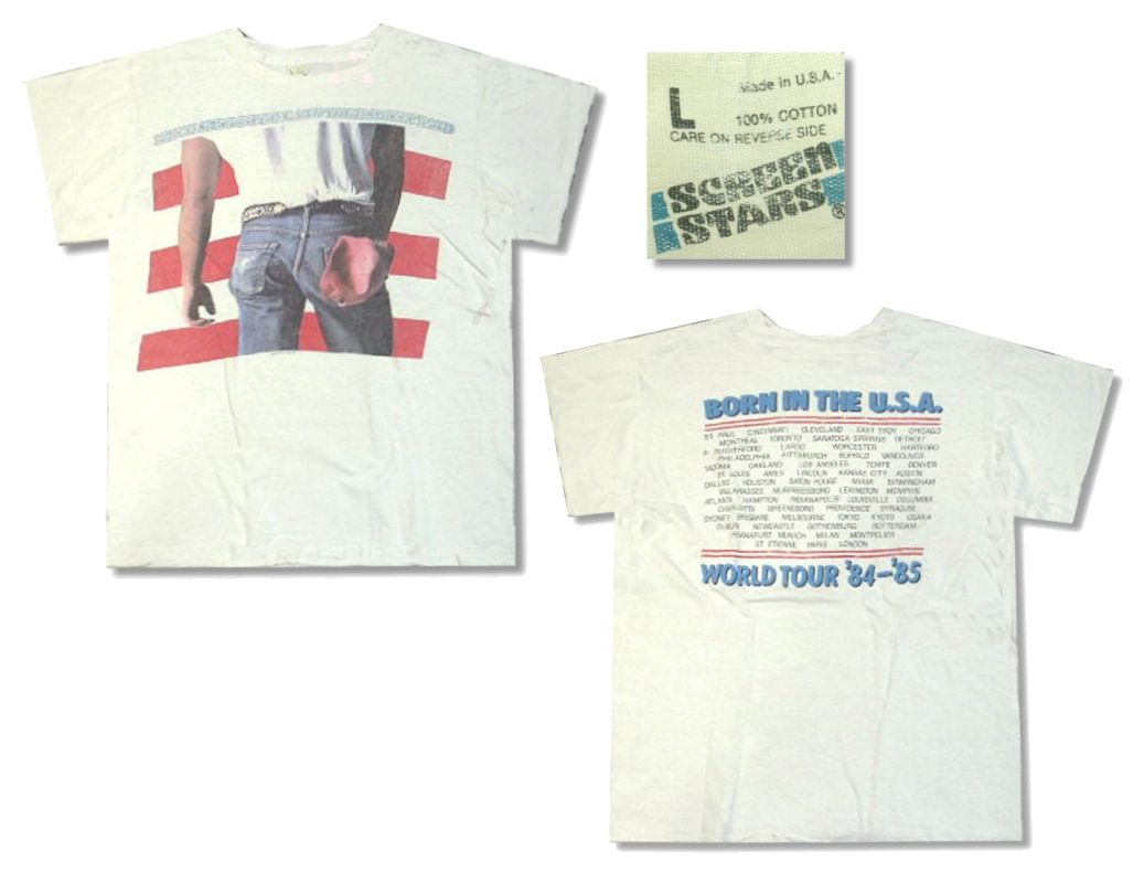 1980年代製 ブルース・スプリングスティーン Tシャツです。MADE IN USA シングルステッチ カラーはホワイトで素材はコットン100%になります。若干細かなホツレのリペアがありますが、特に目立ったダメージはありません。