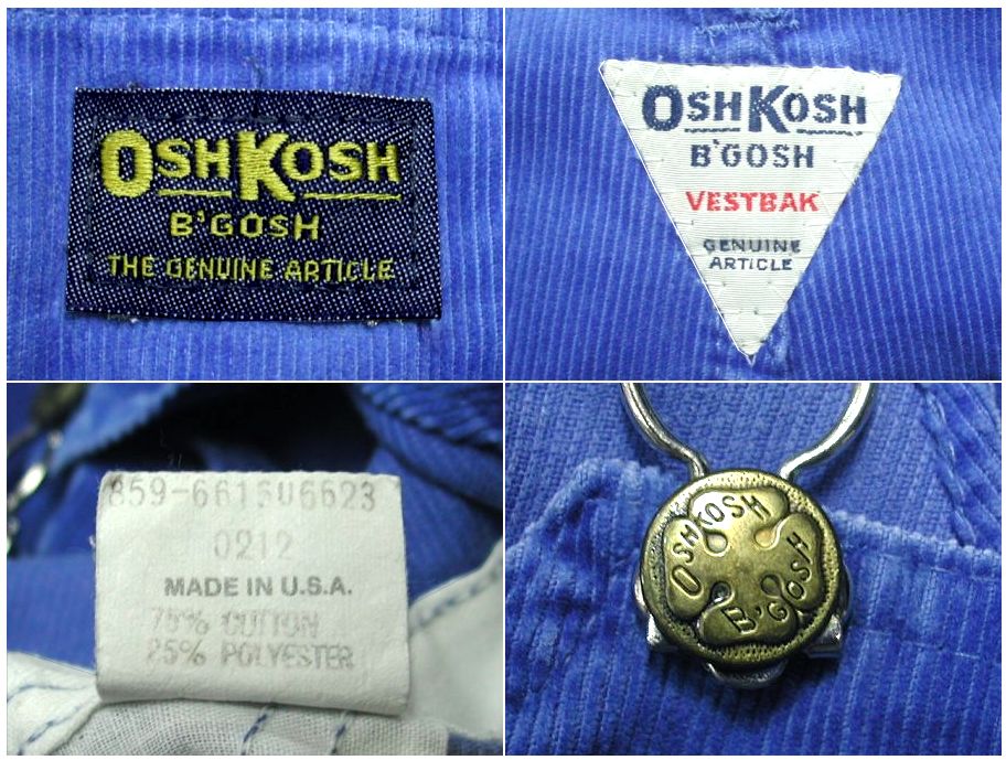 1980年代製 オシュコシュ コーデュロイ オーバーオール キッズモデルです。MADE IN USA カラーはブルーで素材はコーデュロイになります。こちらは2才から3才位の子供用になります。着用感はありますが、特に目立ったダメージはありません。