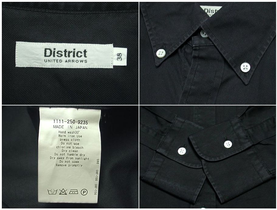 ディストリクト ユナイテッドアローズ ボタンダウンシャツです。MADE IN JAPAN カラーはブラックで素材はコットン100%になります。着用感はありますが、特に目立ったダメージはありません。