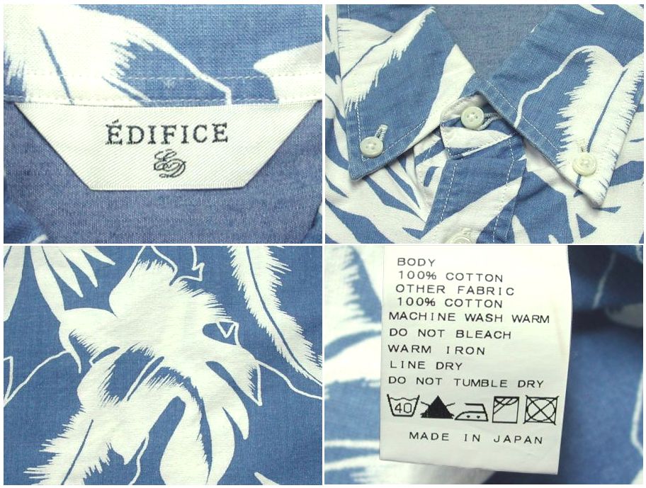 エディフィス 長袖アロハシャツです。素材はコットン100% 着用感はありますが、特に目立ったダメージはありません。