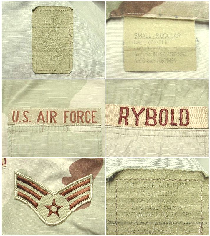 1990年代製 US AIR FOECE デザートカモ フィールドシャツです。SPO100-99-D-0345 RIPSTOP 素材はコットン50%