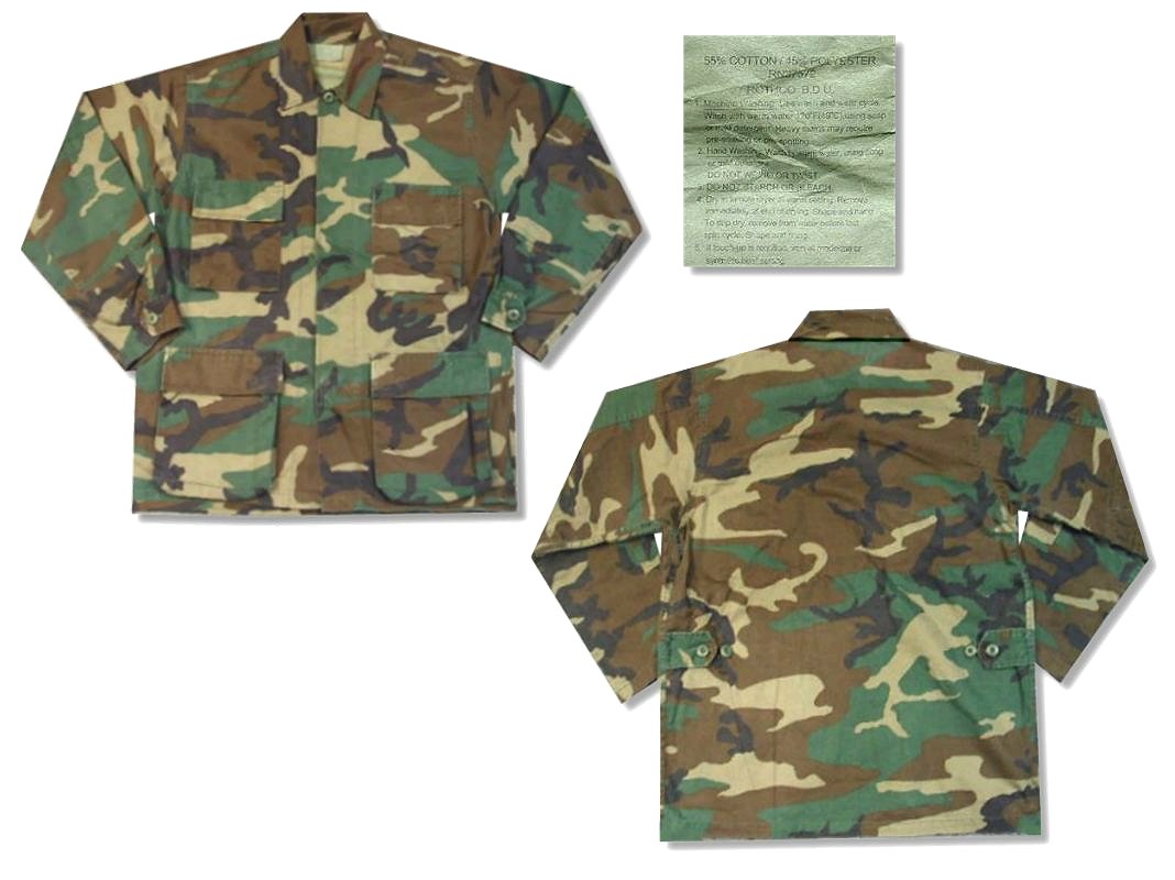 ロスコ ウッドランドカモ フィールドシャツです。素材はコットン55% ナイロン45%になります。着用感はありますが、特に目立ったダメージはありません。