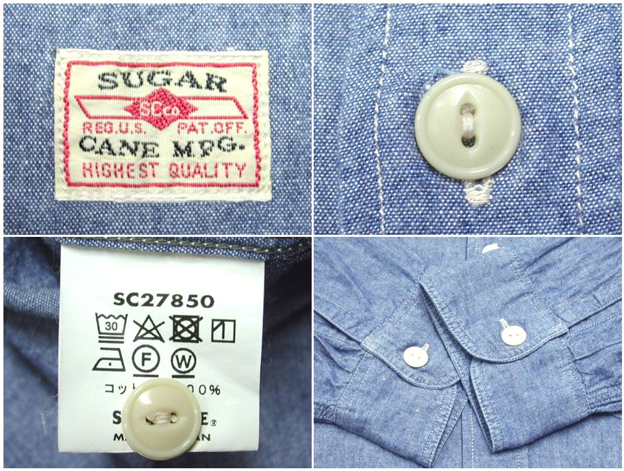 東洋エンタープライズ シュガーケーン シャンブレーシャツです。SC27850 MADE IN JAPAN 素材はコットン100% 着用感はありますが、特に目立ったダメージはありません。