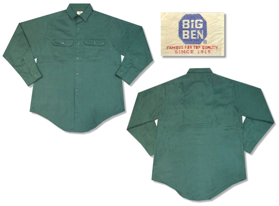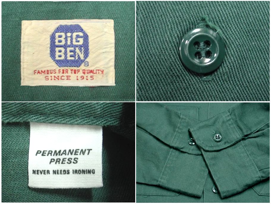 1980年代製 BIGBEN ワークシャツです。MADE IN USA カラーは深緑で素材はコットン100%になります。着用感はありますが、特に目立ったダメージはありません。