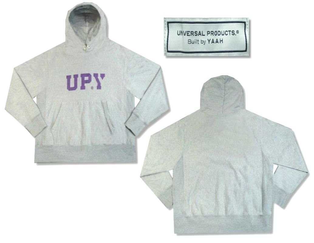 ユニバーサルプロダクツ×YAAH コラボレーション リバースウィーブタイプ スウェットパーカーです。カラーはグレーの霜降りになります。着用感はありますが、特に目立ったダメージはありません。