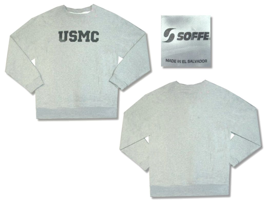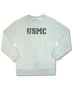 USMC スウェットです。カラーはグレーの霜降りで素材はコットン50% ポリエステル50%になります。着用感はありますが、特に目立ったダメージはありません。