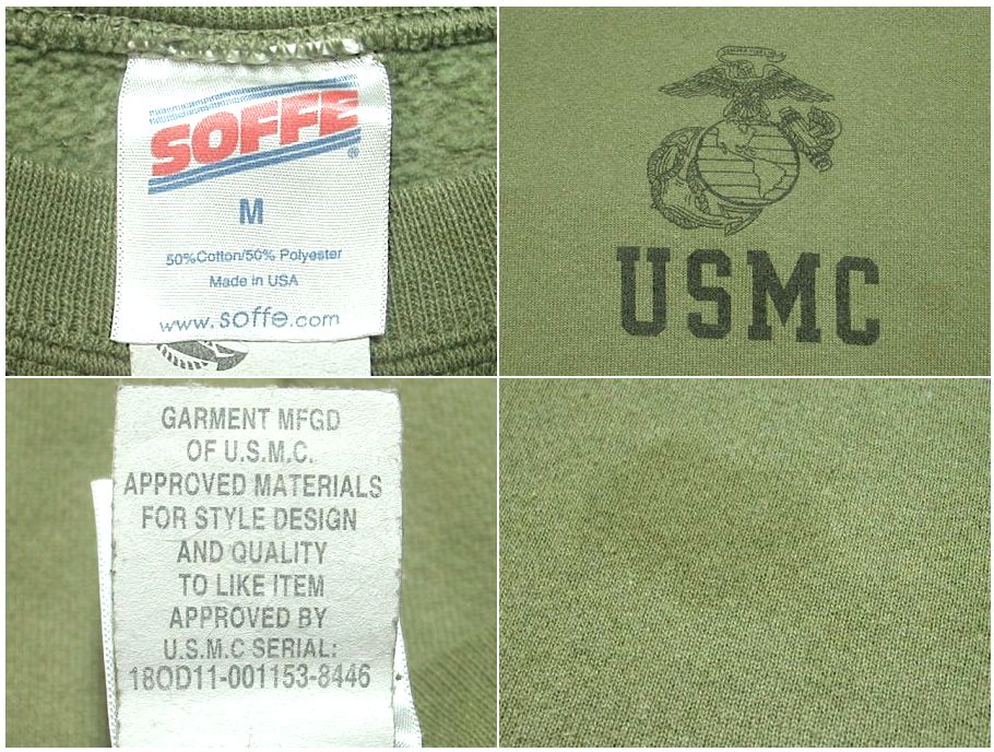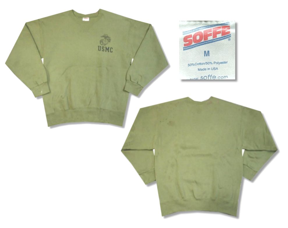 1990年代製 USMC オールドスウェットです。MADE IN USA カラーはオリーブで素材はコットン50% ポリエステル50%になります。若干背中と袖に薄シミがあります。